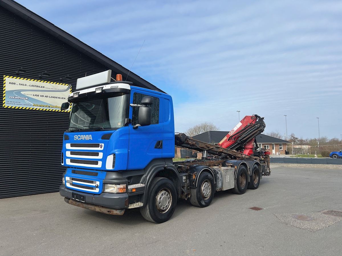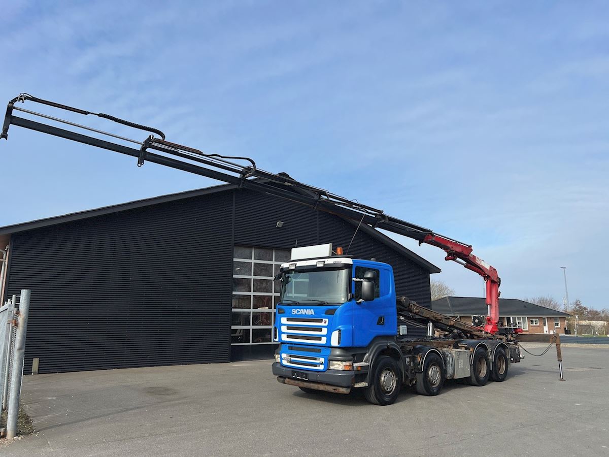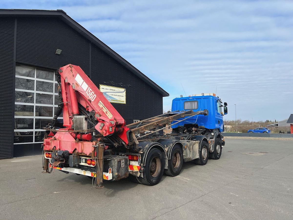 V8 motor, navreduktion, fjedre for og fjedre bag, manuel gearkasse, med 3-vejs HMF hejselad og aftagelig HMF 1560 K5 på konsol med 5 hydr. udskud og dobbelt olie ud