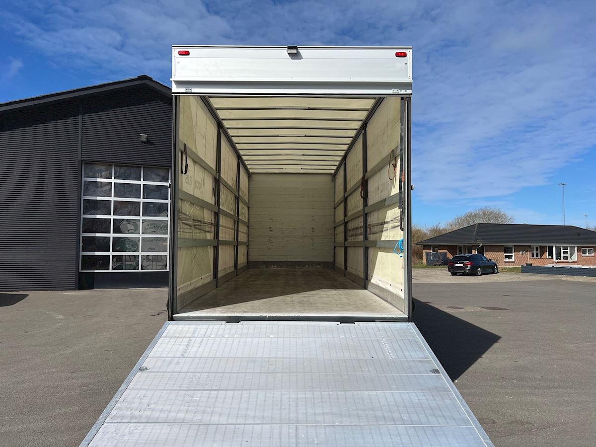 Rigtig fin T-Range med sovekabine, opbygget med alu Plagborg lad med skydepresenning og aluplankebund, 2.000 kg. Zepro lift med lang aluplade på 2,3 m, fjernbetjening, fuld luft, oliefyr, køleskab, klima, kamera, navigation - SKAL SES..