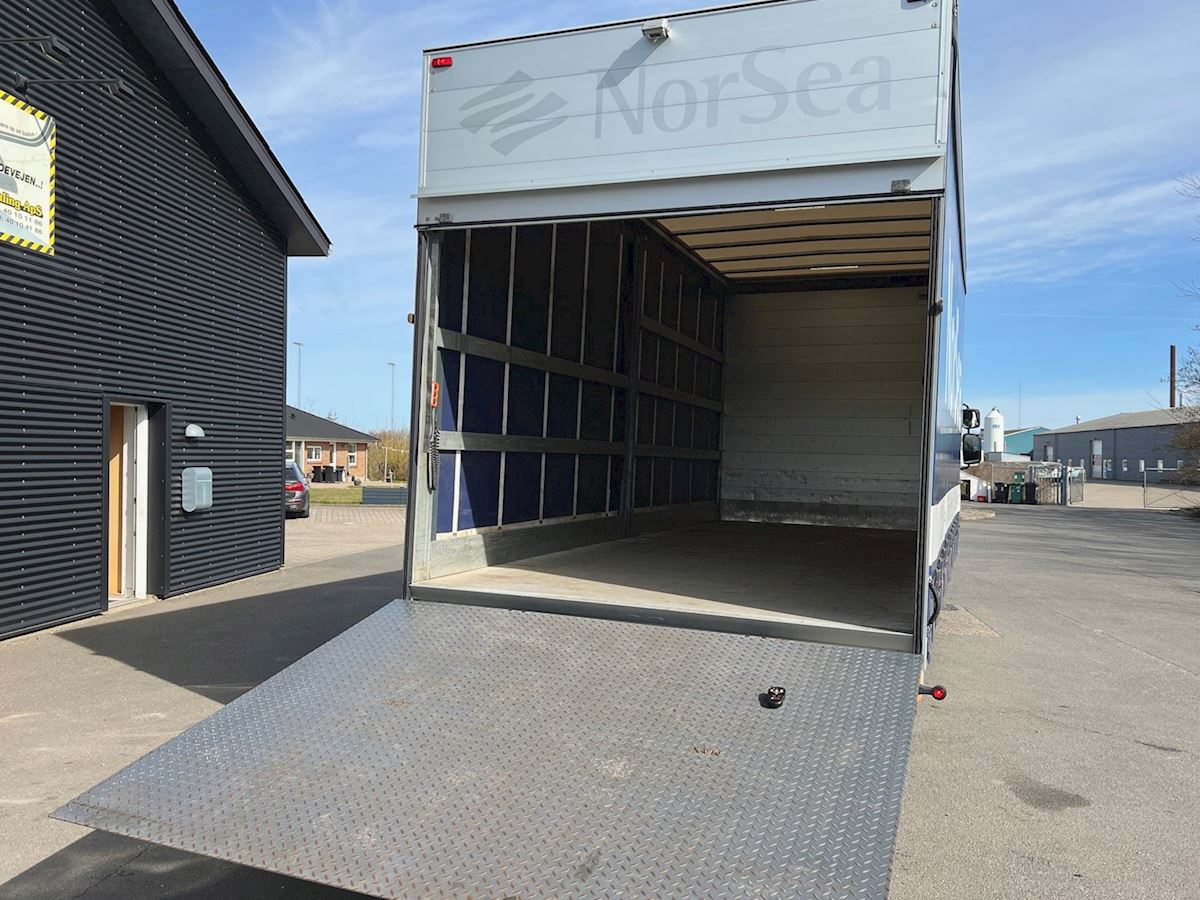 Euro 6 miljøzonegodkendt, meget velholdt dansk opbygget med 6,6 m lad med skydepresnninger, 2.500 kg. Zepro lift med stor plade og fjernbetjening, luft i bag, spoiler, A/C, aut. gear, kameraer m.v. Bemærk kun km 110.000