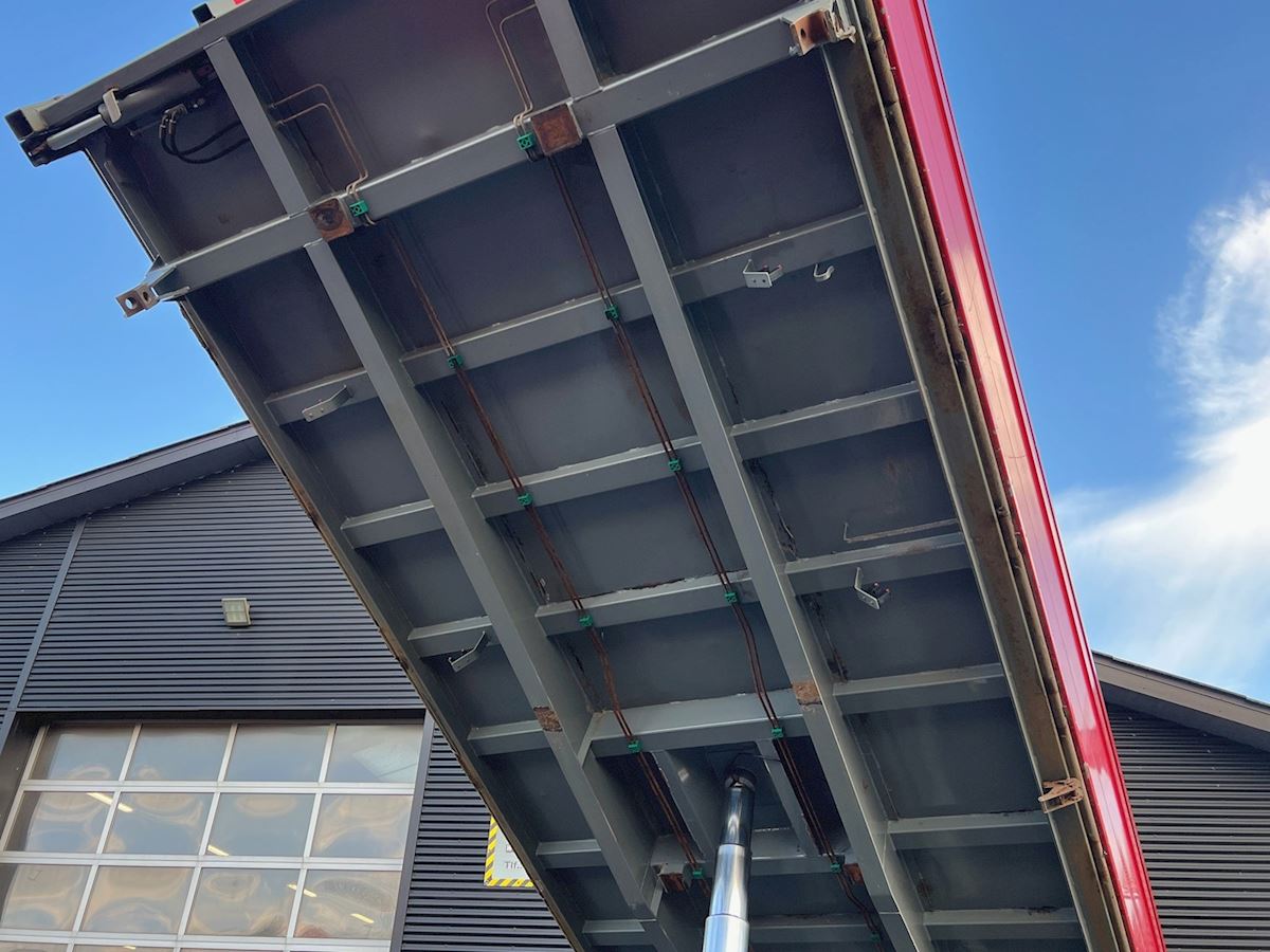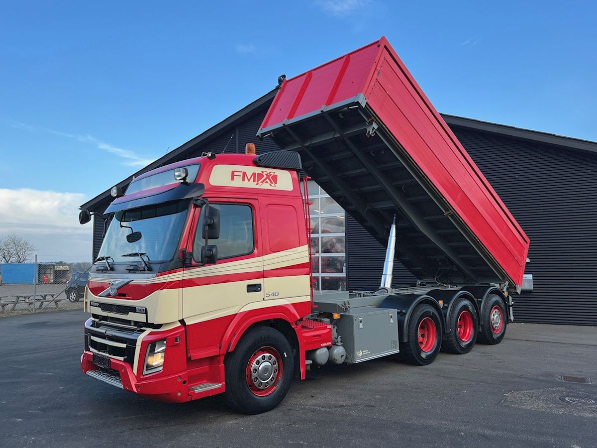 Euro 6 miljøzonegodkendt - 1-ejers vogn fra ny, opbygget med 3-vejs tippelad med hydr. pendel i begge sider, aut. bagsmæk, luftstyret VBG kærretræk, fuld luftaffjedret, skabe, projektører, arb. lys, blitzblink mv. Indvendig med oliefyr, klima, kaffemaskine, læder motorkappe, navigation, bakkamera, Volvo Dynamic Steering, VEB+ motorbremse, Work remote, engine shut down, loadindikator m.v.