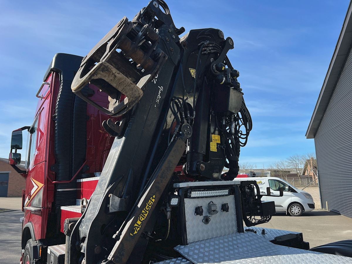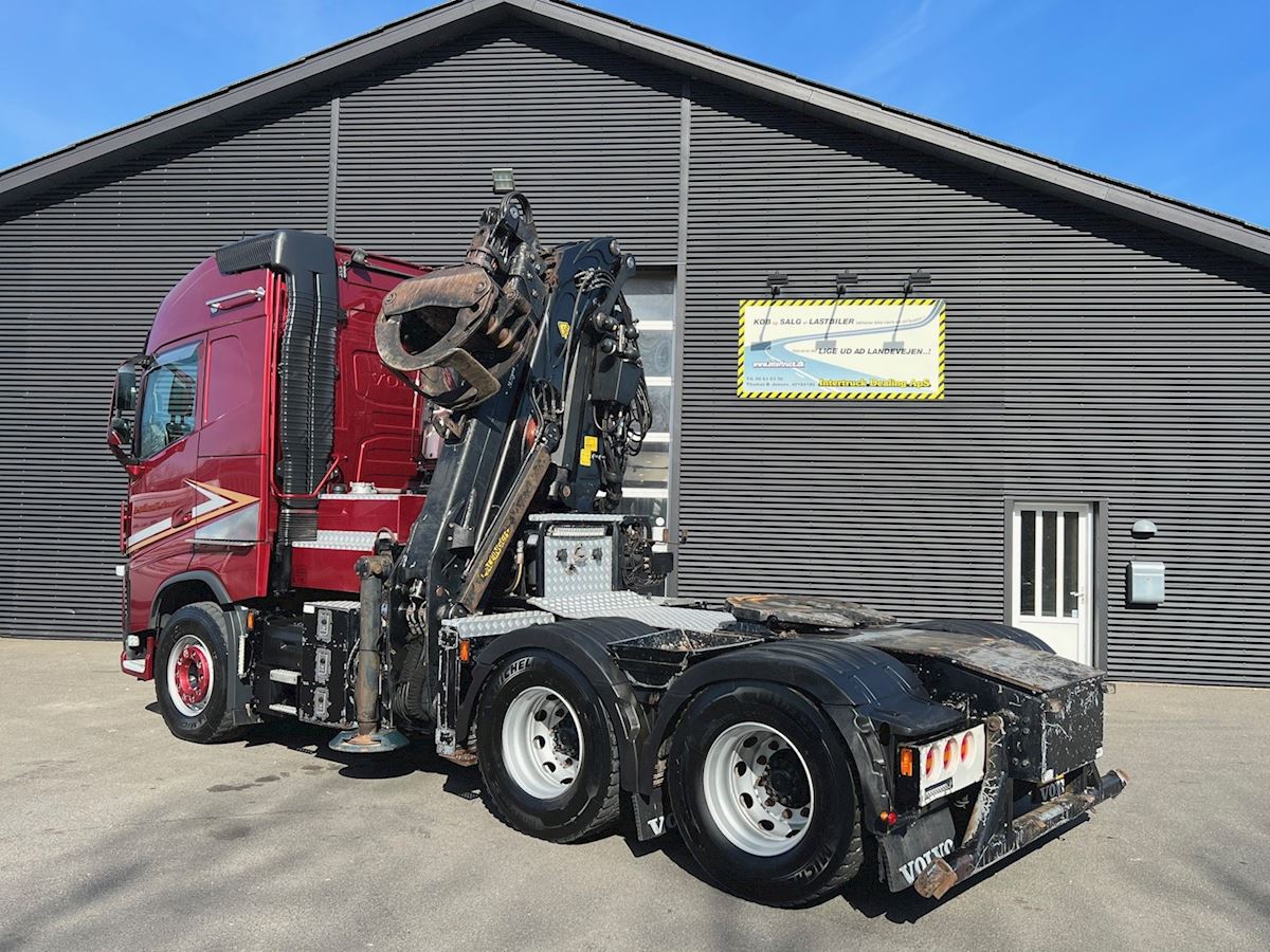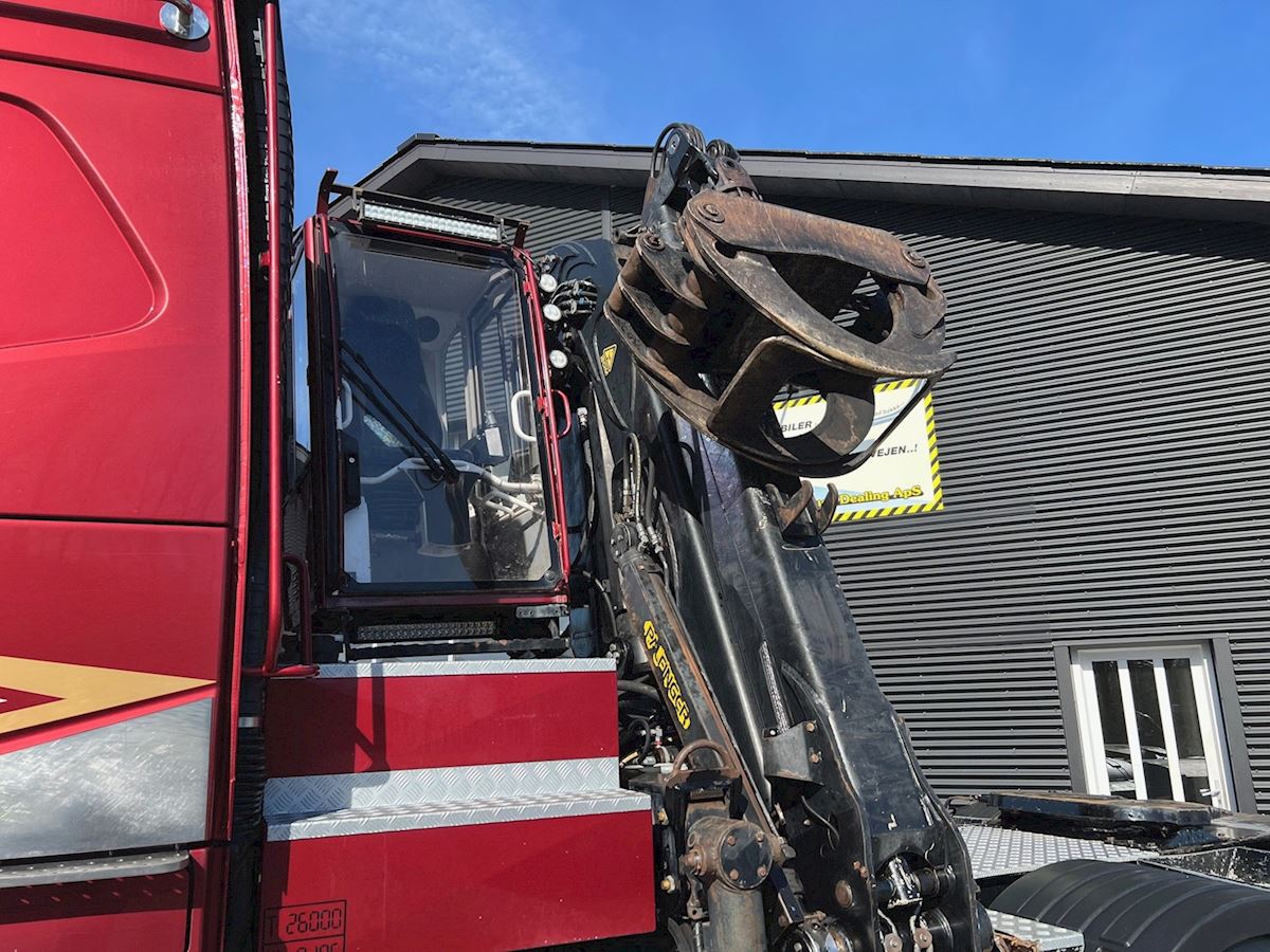 6X4 med tandem løft, med Epsilo Z092S skovkran med hævbar førerhus - betjening via joystik, tilhørende skovgrab, regulær vogn, I-shift, VEB+ motorbremse, Work Remote, Volvo Dynamic Steering, lædersæder, stilstandklima, indv. med læder og plys, kaffemaskine, TV m.v.