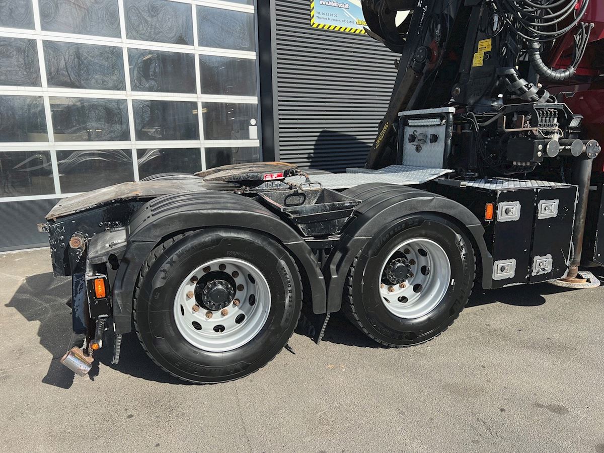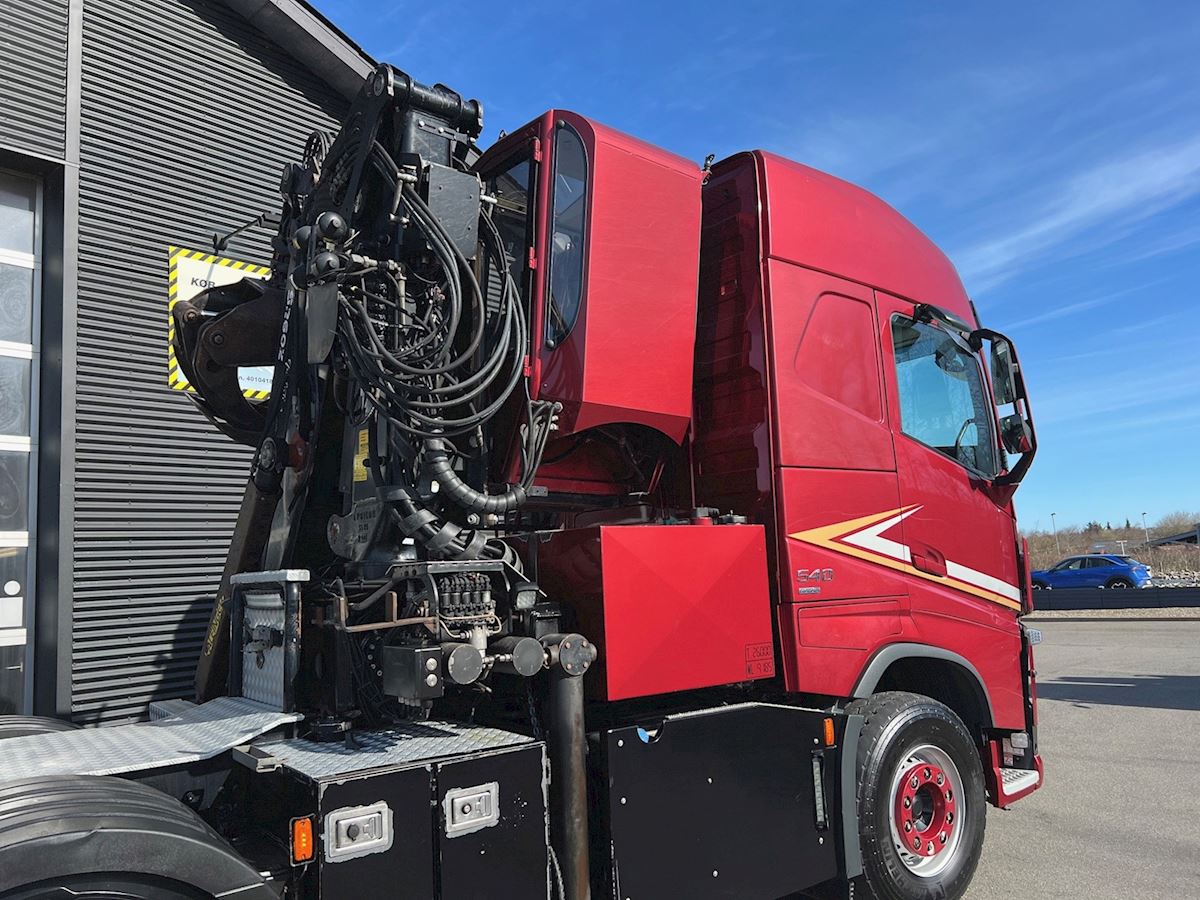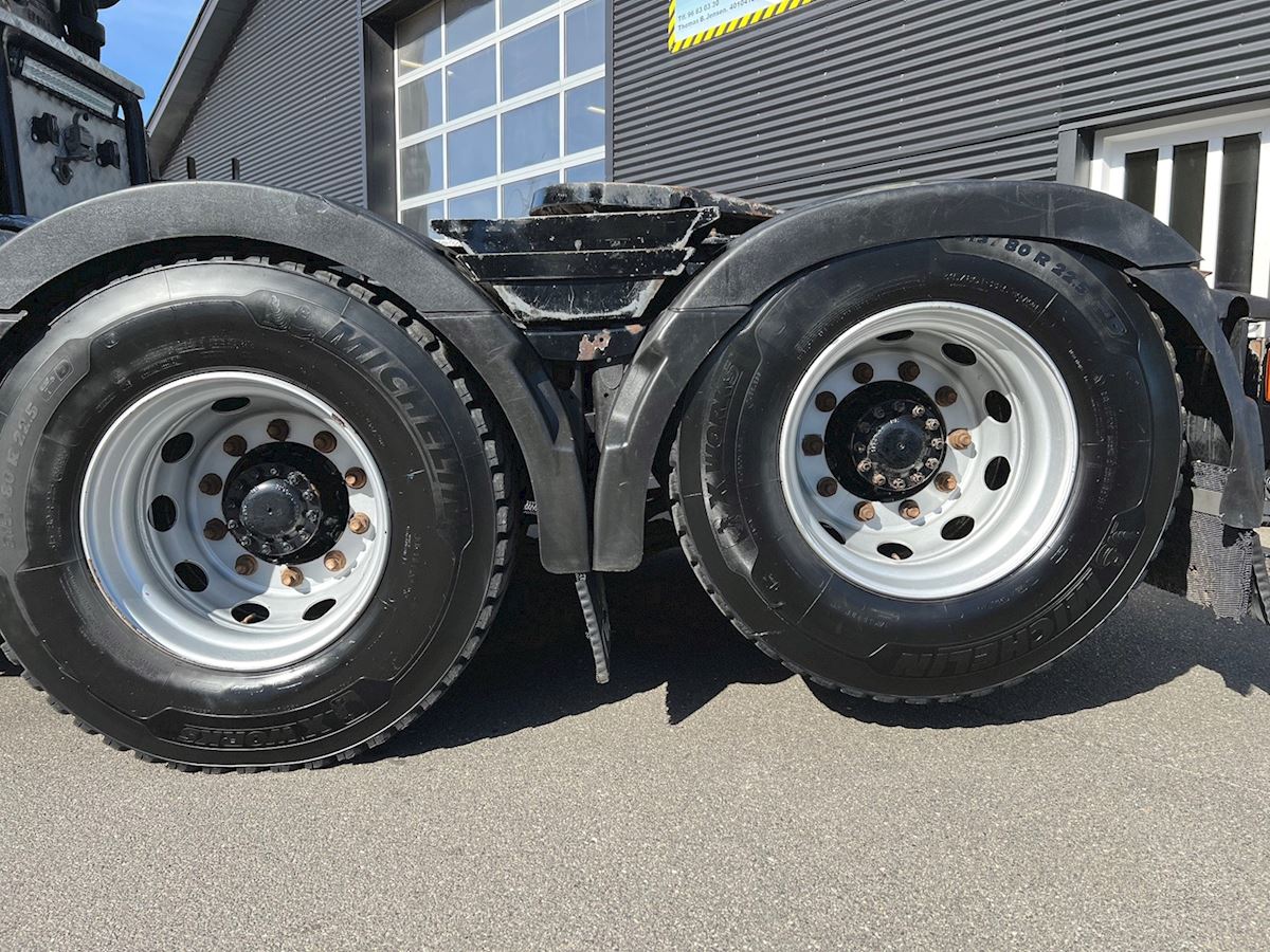6X4 med tandem løft, med Epsilo Z092S skovkran med hævbar førerhus - betjening via joystik, tilhørende skovgrab, regulær vogn, I-shift, VEB+ motorbremse, Work Remote, Volvo Dynamic Steering, lædersæder, stilstandklima, indv. med læder og plys, kaffemaskine, TV m.v.